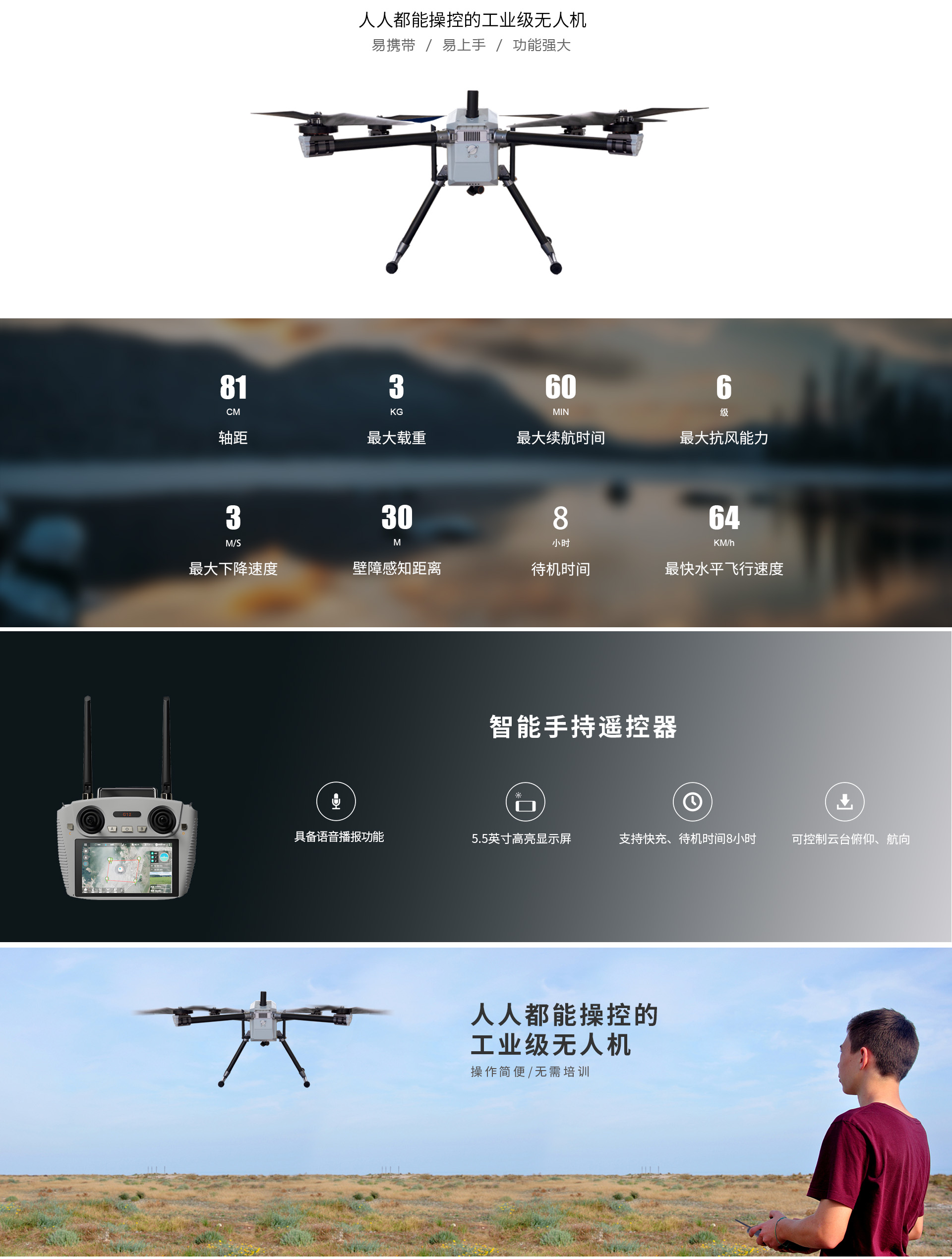 采用超輕碳纖維螺旋槳葉,螺旋槳具有快拆裝置,槳葉不依賴任何工具可快速拆裝;